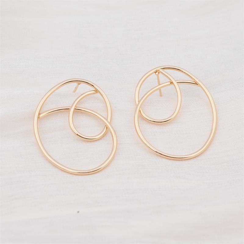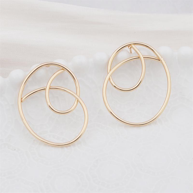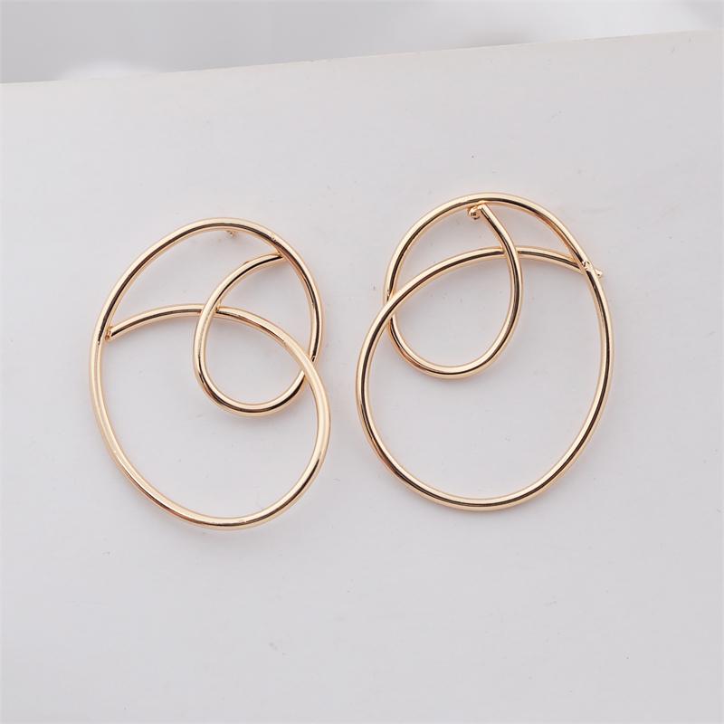 Геометрия Линия Абстрактное Искусство Круглые Неправильной Формы Золотистые Серьги-Пусеты для Женщин Полые Ювелирные Изделия Аксессуар