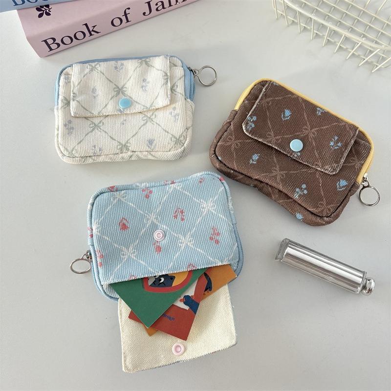 Вельветовый Принт Картхолдер Застежка-защелка Кошелек для монет на молнии с кольцом для ключей Детский милый кошелек Маленький кошелек Держатель для кредитных карт на молнии ID-сумка