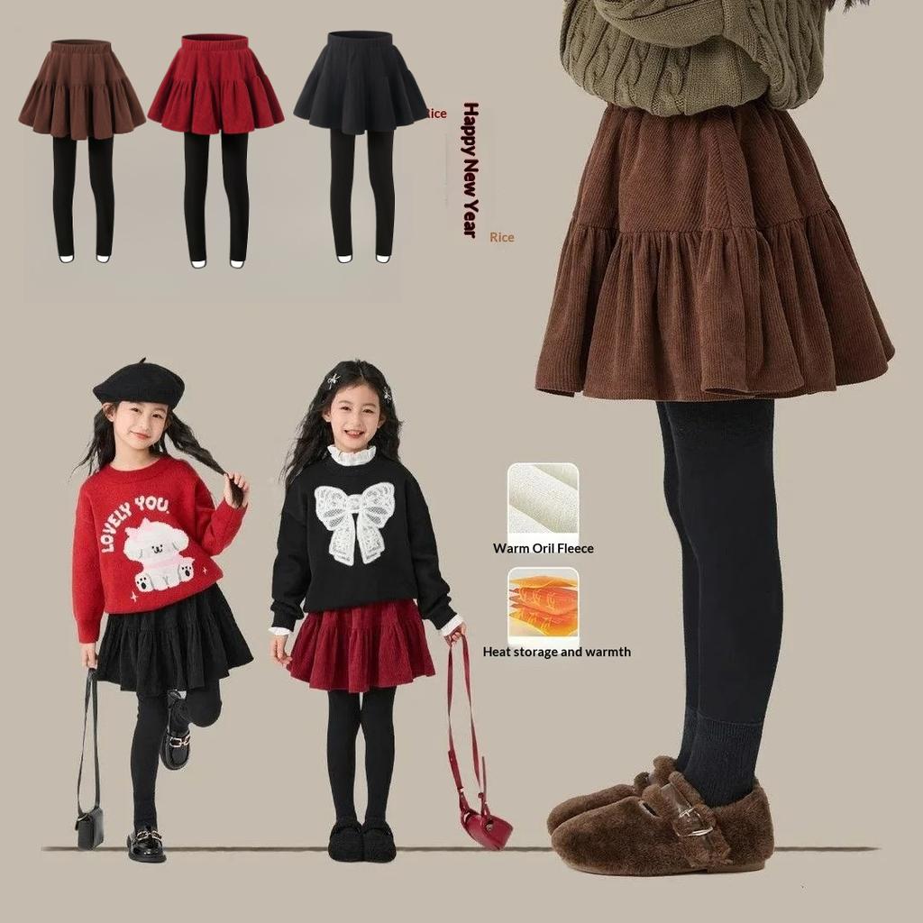 Подростковые школьные кюлоты для девочек с флисовой подкладкой, юбка-брюки, зимние утепленные юбка-леггинсы, детские плиссированные колготки-юбка из двух частей