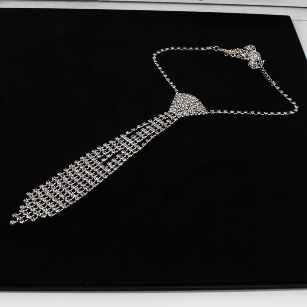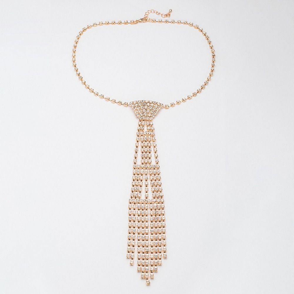 Ожерелье-чокер с подвеской-кисточкой из страз, преувеличенная хрустальная цепочка, форма галстука, женское