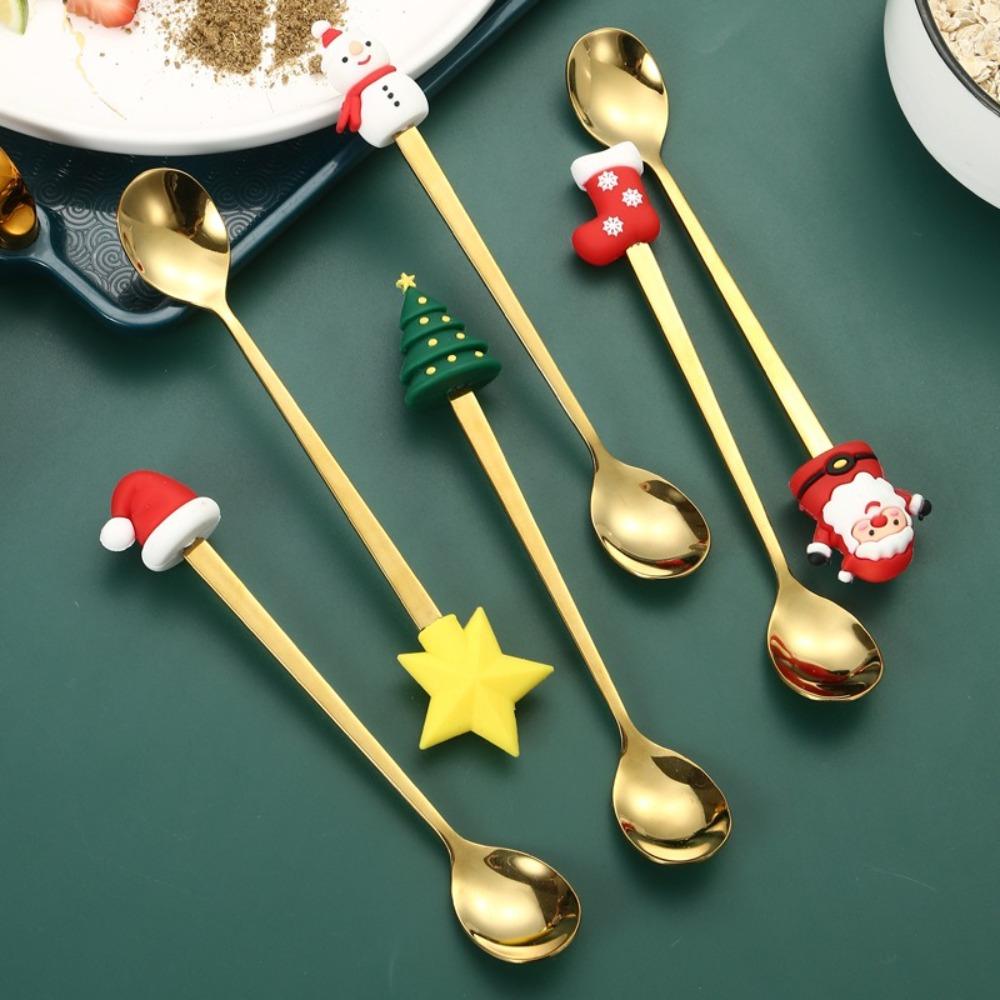4/6pcs Gold Silver Spoon Fork Set Merry Christmas Coffee Tea Spoon Dessert Fork Birthday Gift