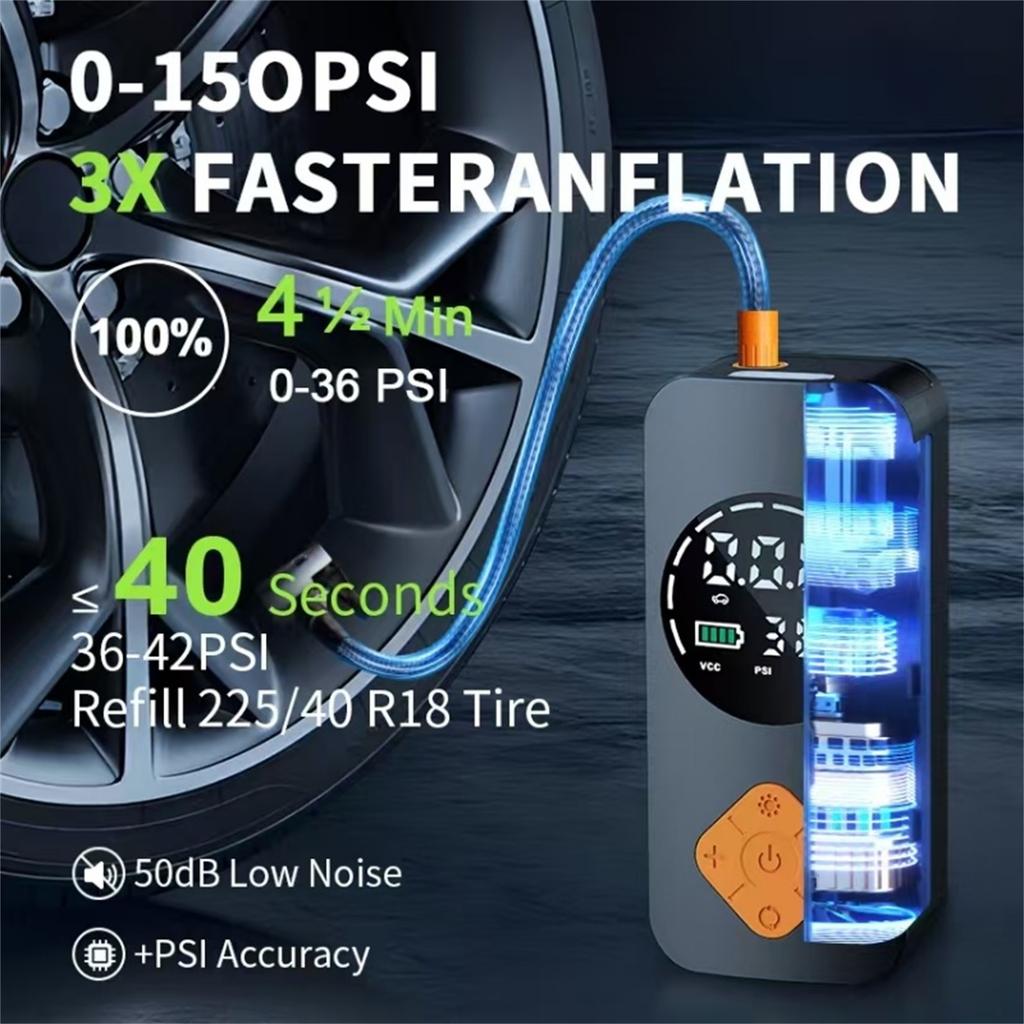 Портативный компрессор для накачивания шин, беспроводной велосипед с цифровым дисплеем значений, автомобильные шины 150 фунтов на квадратный дюйм со светодиодными фонарями для автомобилей, мотоциклов