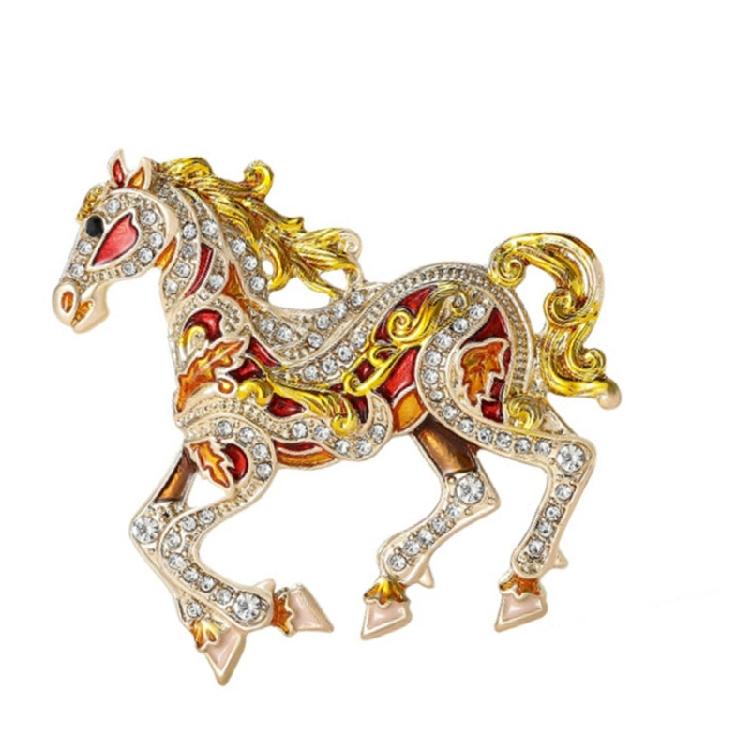 Очаровательная эмалированная брошь в виде лошади отличается ярким мультяшным дизайном с блестящими стразами, сочетая игривое очарование и элегантное мастерство для универсального дополнения к образу.