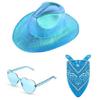 3 шт. Взрослая ковбойская шляпа+Солнцезащитные очки-сердечки+Бандана Женский солнцезащитный набор ковбойской шляпы