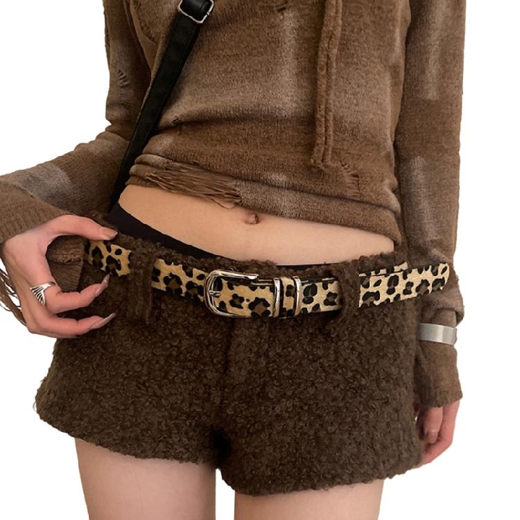 Крутая ковбойская поясная цепочка Повседневный ремень Леопардовый принт Пояс Пояс-скинни