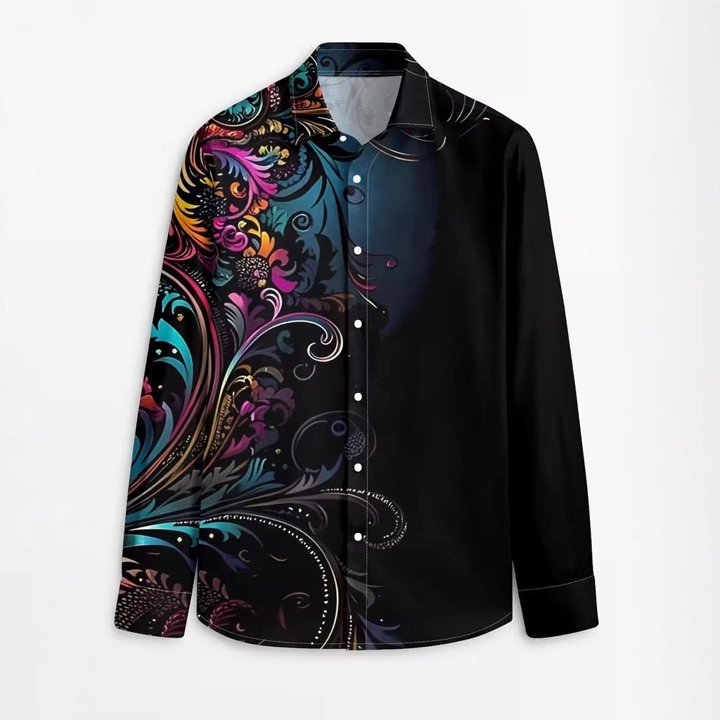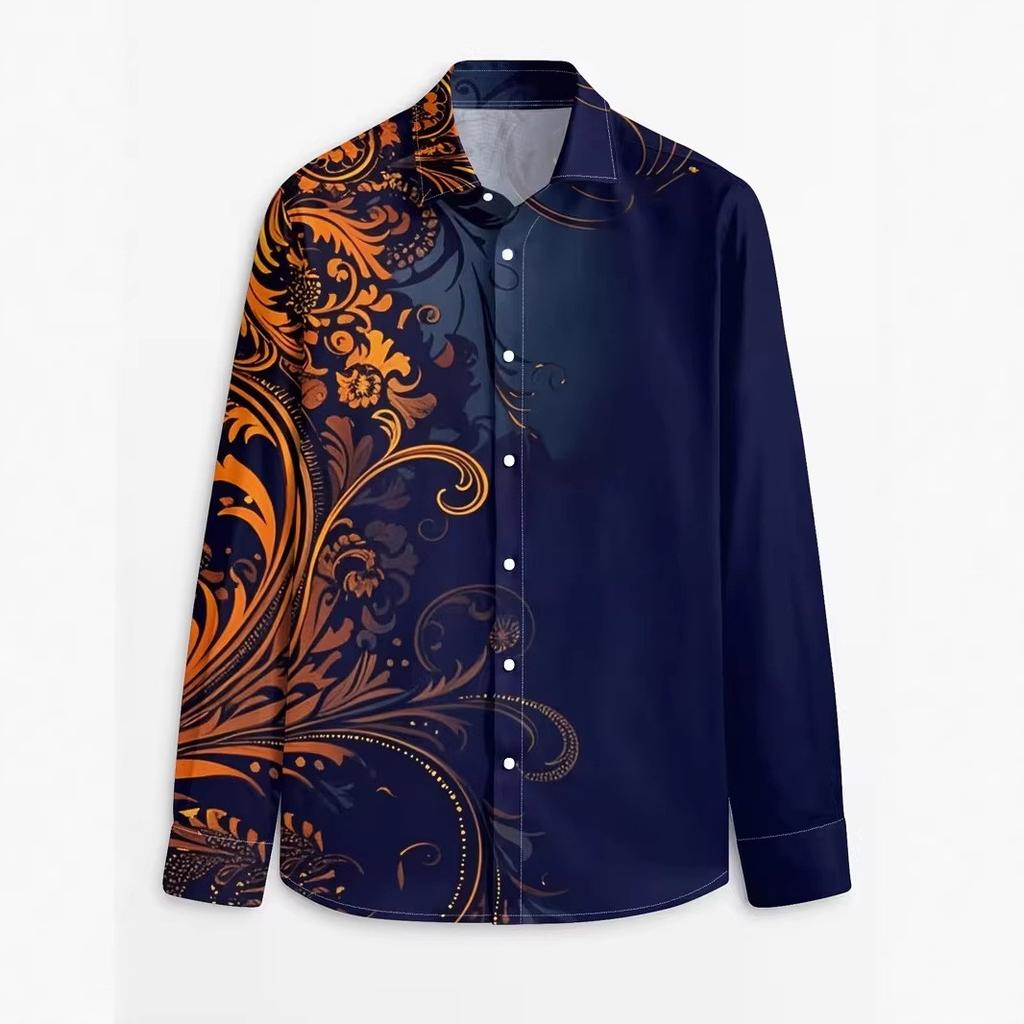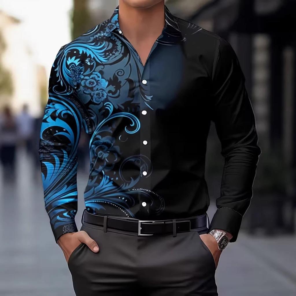 Весна Осень Новая Мужская Рубашка с Длинным Рукавом Мужская Повседневная Деловая Рубашка с Лацканами с 3D Цифровой Печатью