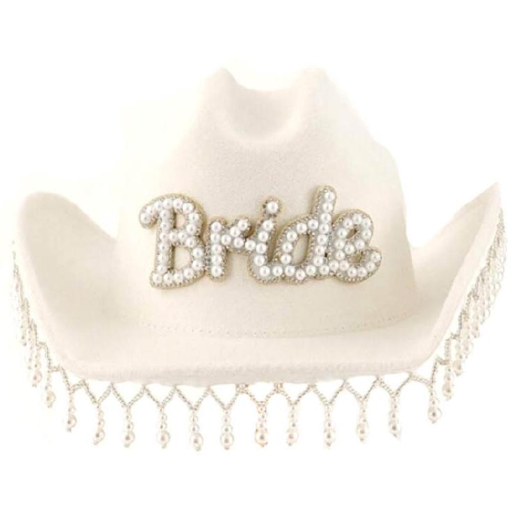Вечеринка для невесты Ковбойская шляпа с бахромой и жемчугом Шляпа невесты Федора для девичника