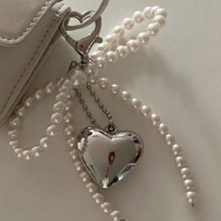 Модный брелок с лентой-бабочкой, подвеска-сердечко, искусственный жемчуг, цепочка для ключей