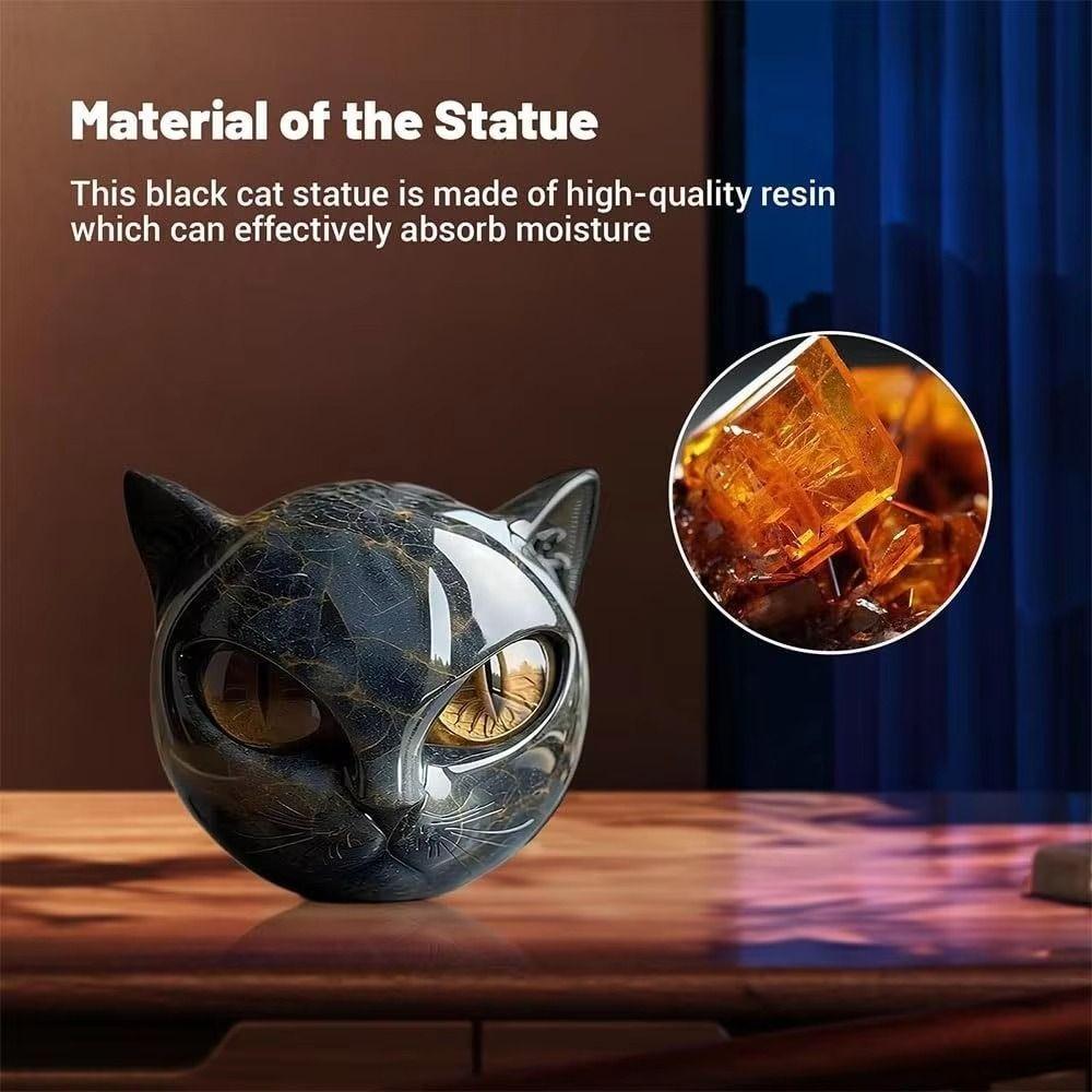 Янтарные Глаза Черный Кот Каменная Фигурка Смола Ручная Резьба Кот Камень Хэллоуин Декор