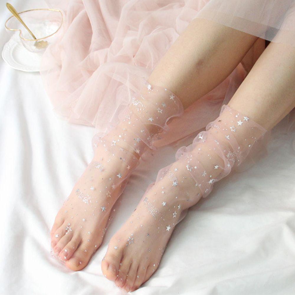 Summer Candy Colors Ladies Women Shiny Stars Glitter Women Socks Transparent Fishnet Socks Hosiery — купить товар онлайн с бесплатной доставкой до всему миру!