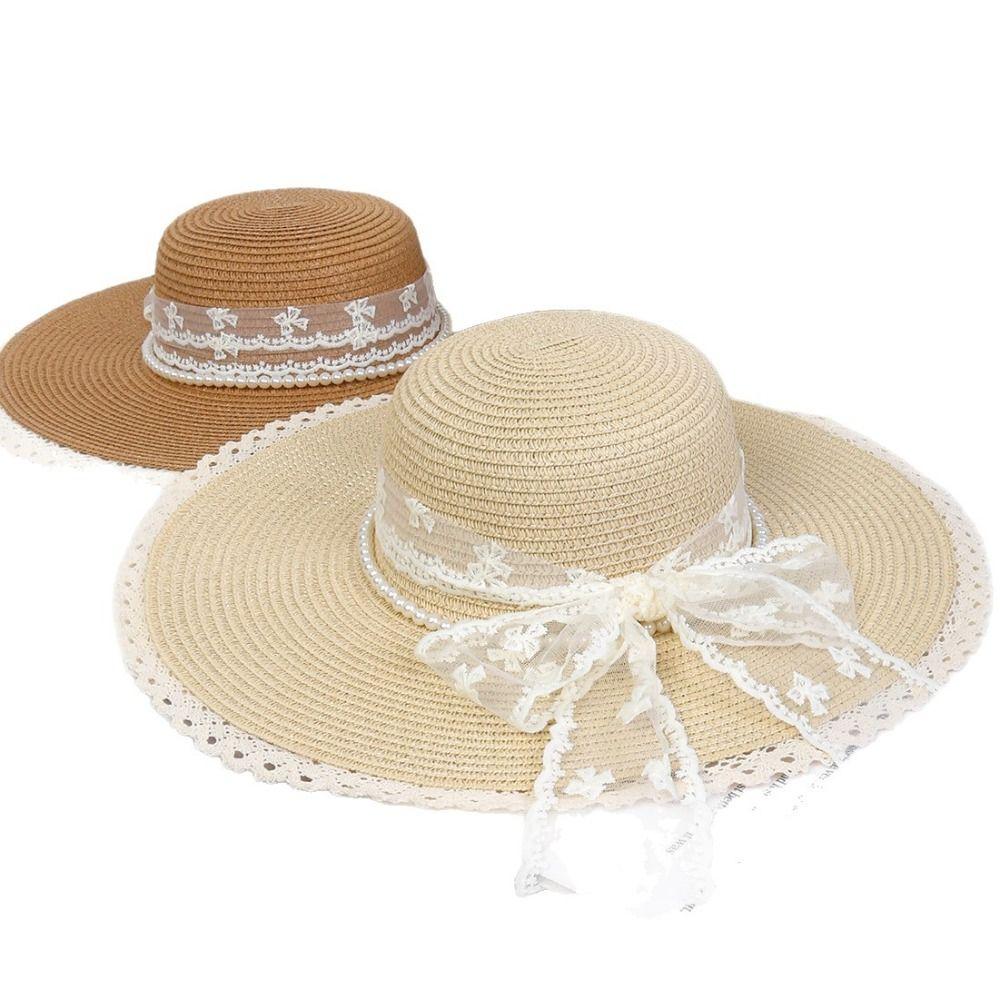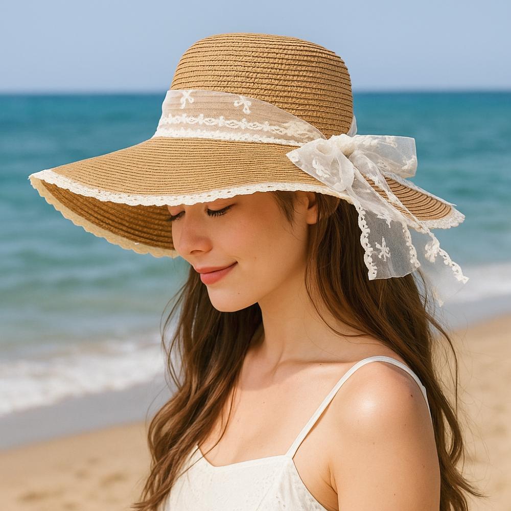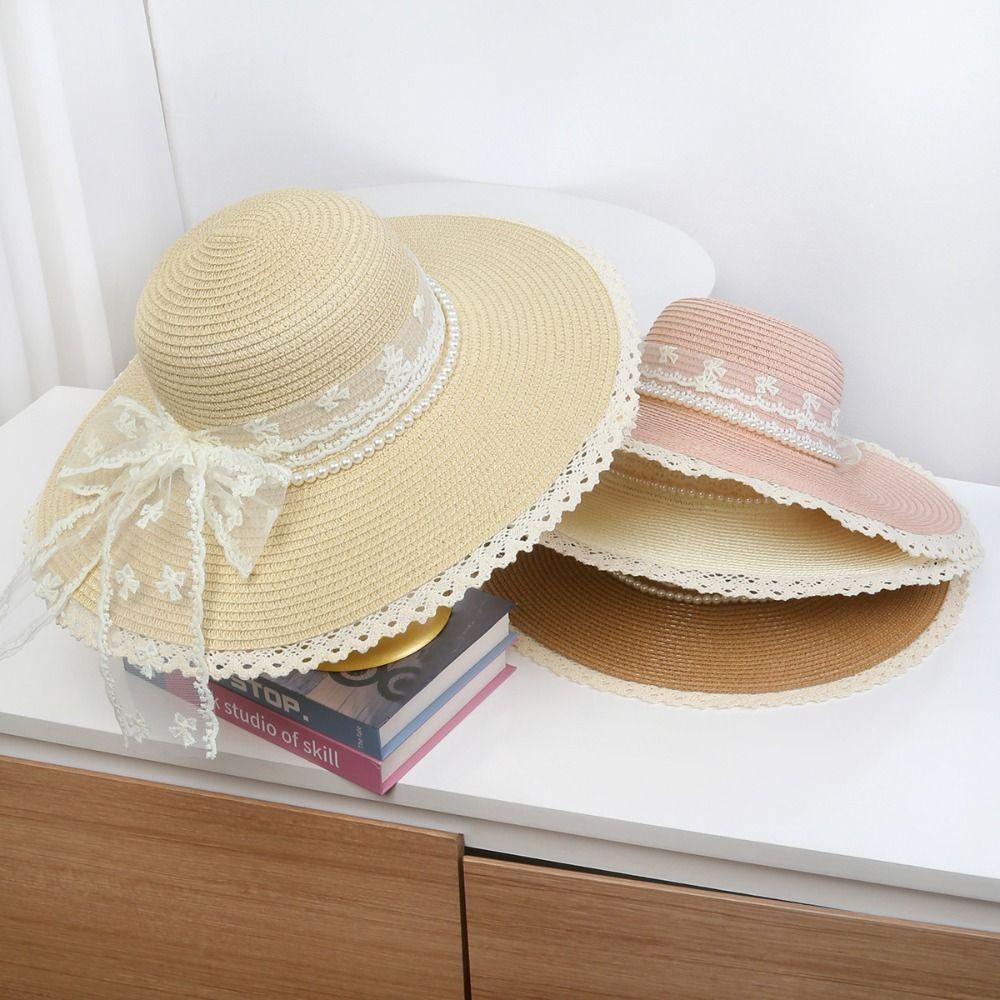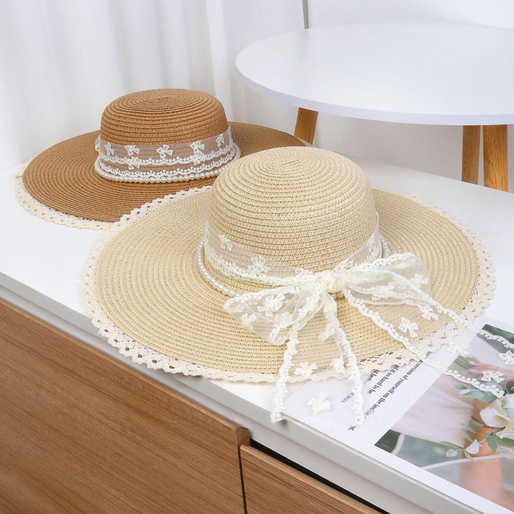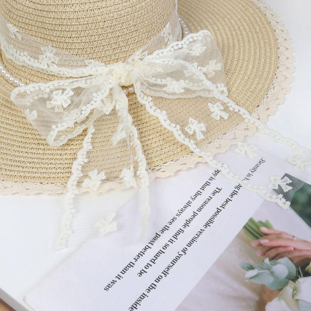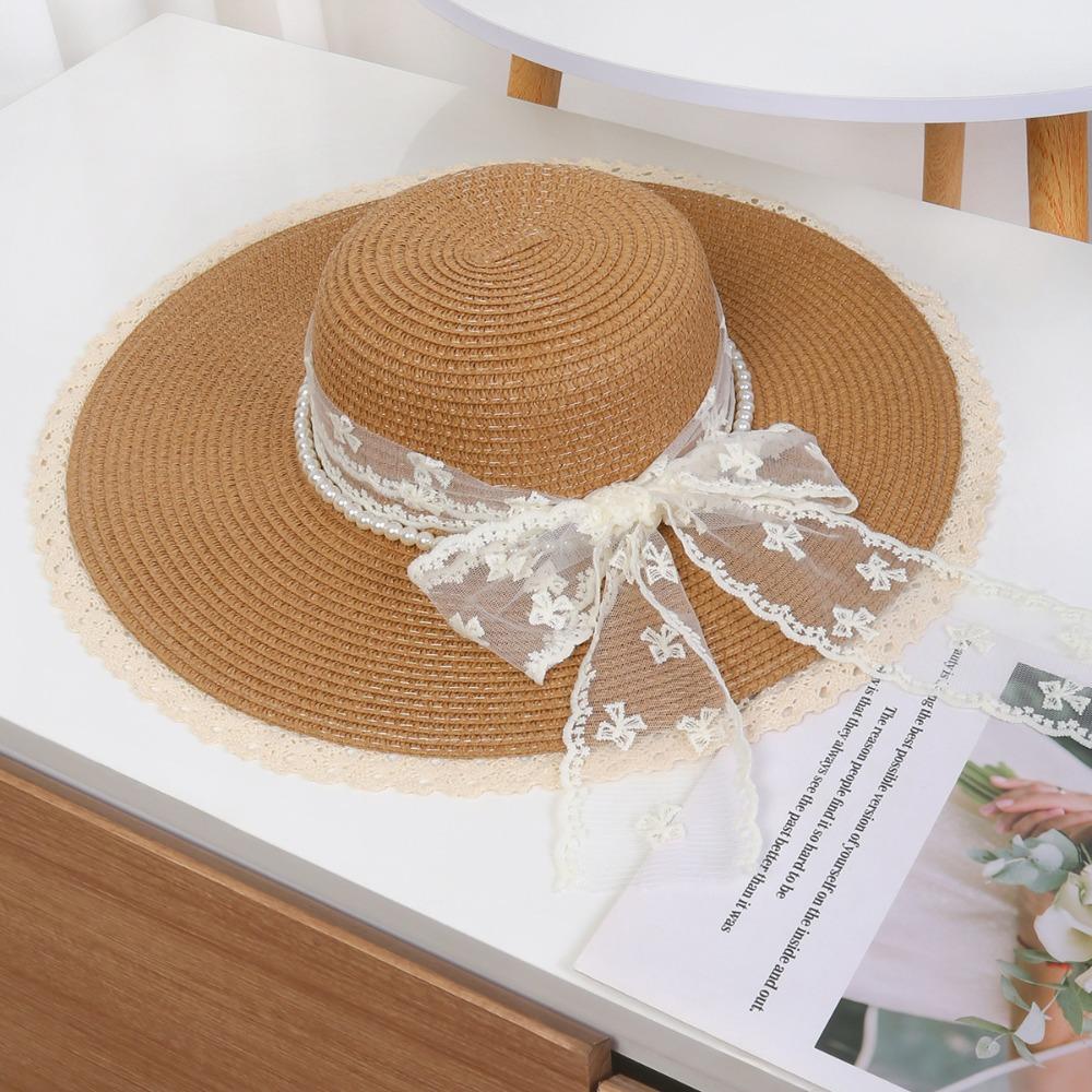 Элегантная соломенная шляпа с широкими полями, дышащая шляпа от солнца на завязках из кружева, повседневная пляжная шляпа для девочек