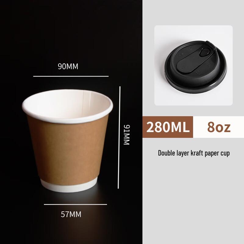 Disposable Double-Layer Kraft Paper Cups with Lids — купить товар онлайн с бесплатной доставкой по всему миру!