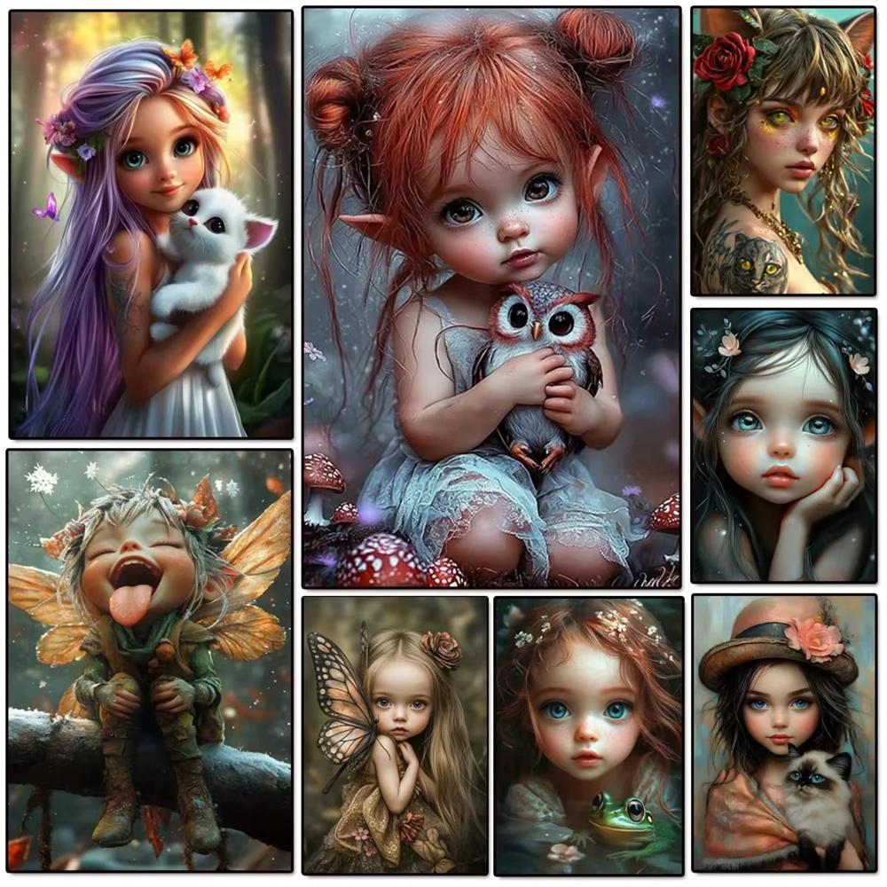 5D Алмазная Живопись Девочка Сова Лягушка Кошка Бабочка Картина Полная Алмазная Мозаика Эльф Вышивка Крестом Наборы Искусство Домашнее Украшение