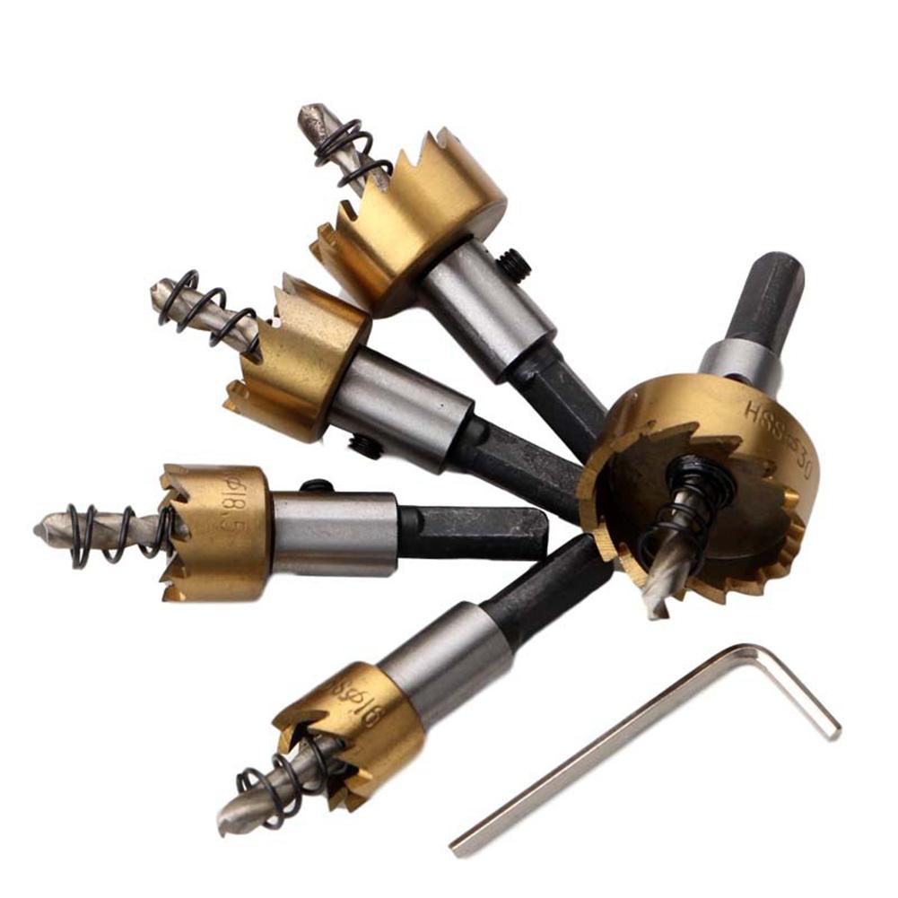 5 шт. Титановое покрытие Зубчатый Открыватель отверстий Железо Алюминиевая пластина Сверление Сверло Резак для отверстий 16-30 мм Твердосплавный наконечник Сверло HSS