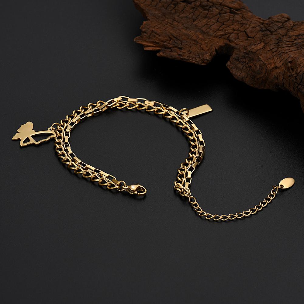 JewelryTop Noble 18K Золото Медь Шармы Браслеты Двойная Цепочка для Леди Женщин Мужчин Свадьба Девушка 18+5см Оригинал