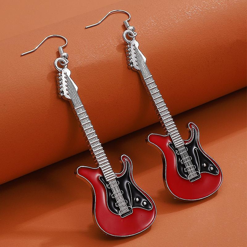 Obega Guitar Drop Earrings For Women Copper Color Black Red White Epoxy Vintage Girls Cute Jewelry Gift Fishhook Style — купить товар онлайн с бесплатной доставкой по всему миру!