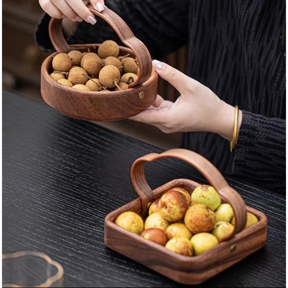 1PC Plate With Handles 15*15*4cm Walnut Wood Handheld Chinese Style Tea Pastry Nut Fruit Tray Solid Wood Snack Tableware