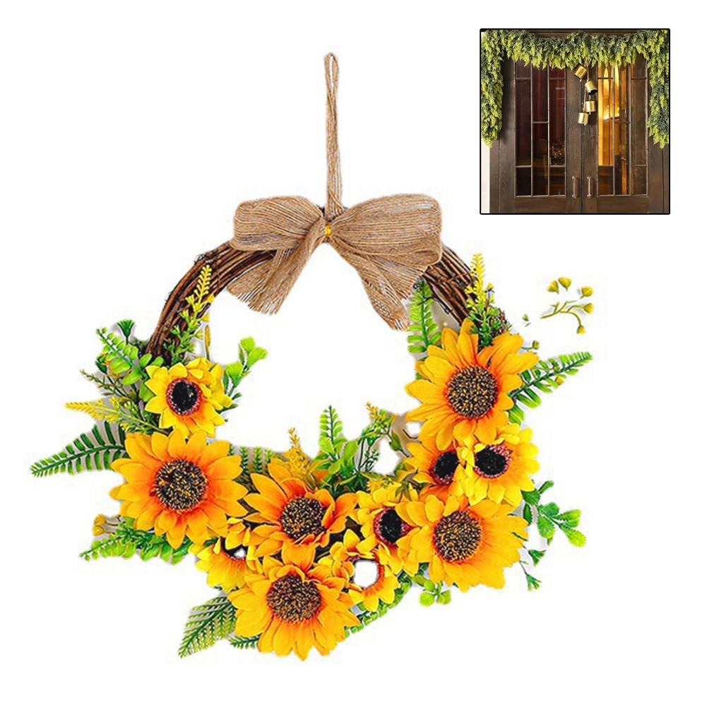 1PC Artificial Sunflower Garland 30*30 Cm Autumn Sunflower Wreath For Thanksgiving & Seasonal Home Decor Wreaths & Garlands