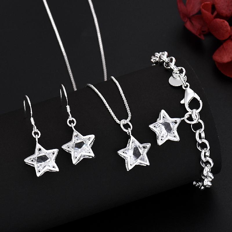 Popular s Copper pretty Crystal Star necklace earring bracelet Jewelry set Women Fashion Wedding accessories