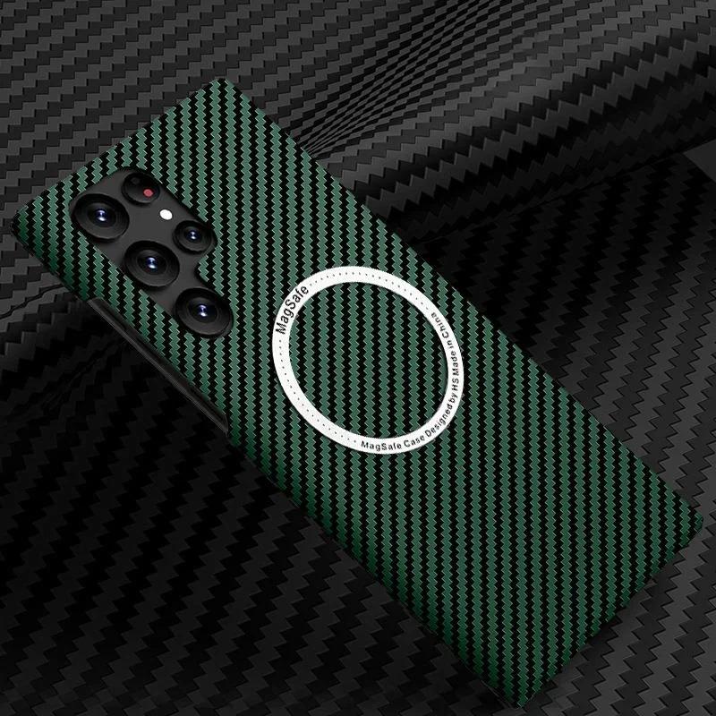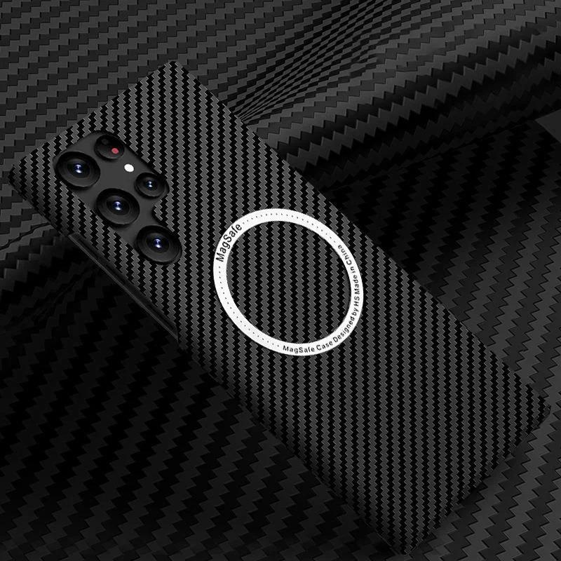 Для Samsung Galaxy S25 S24 S23 S22 Ultra Plus Чехол Магнитный Мягкий из Углеродного Волокна Mag Safe Матовый Ударопрочный Чехол Беспроводная Зарядка