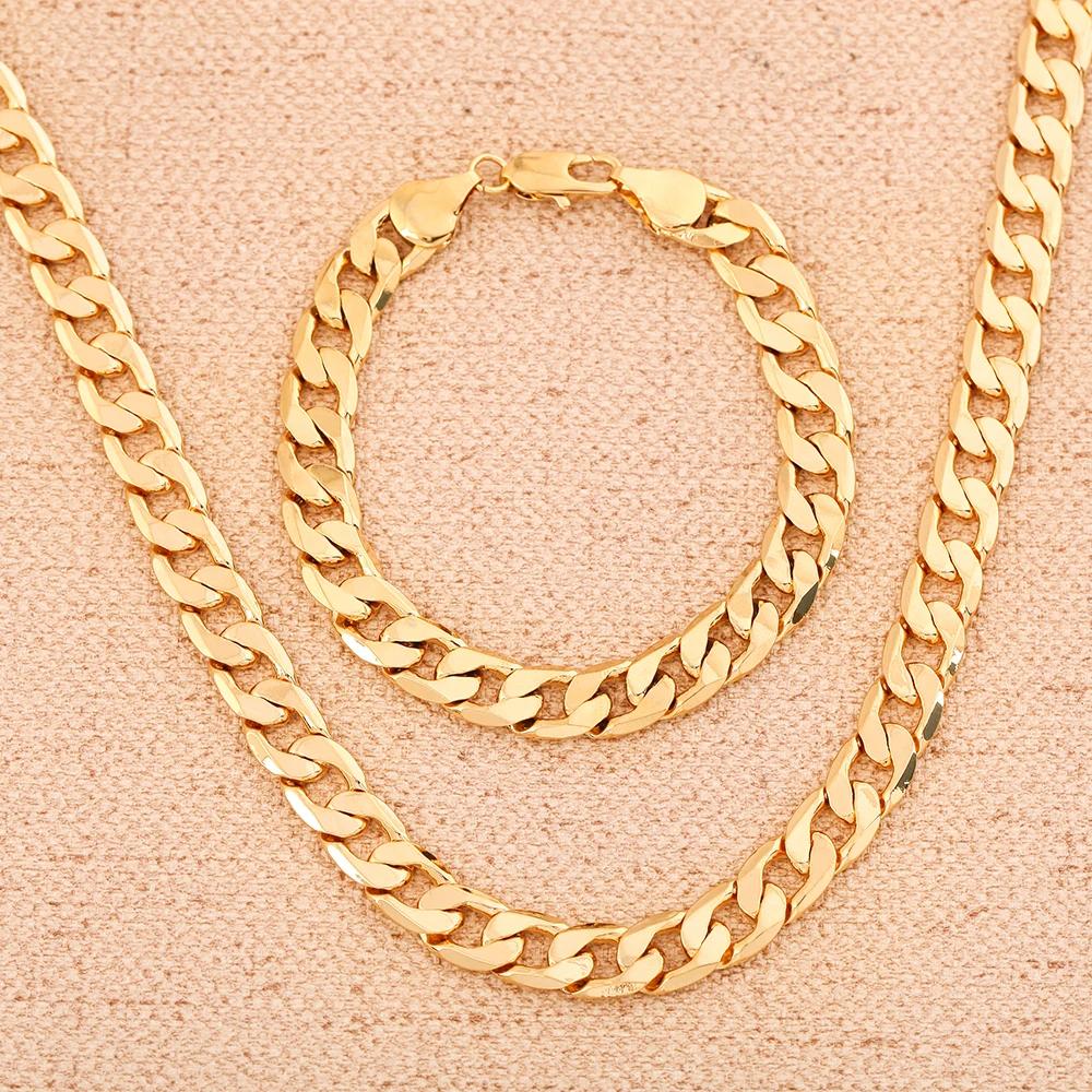 Медь Цвет 18К Золото Классическая Цепочка 6 мм Браслет Ожерелье для Женщин Мужчин Свадебный Ювелирный Набор