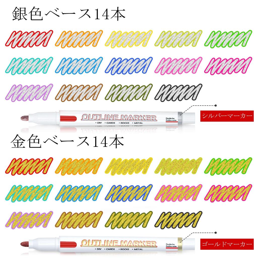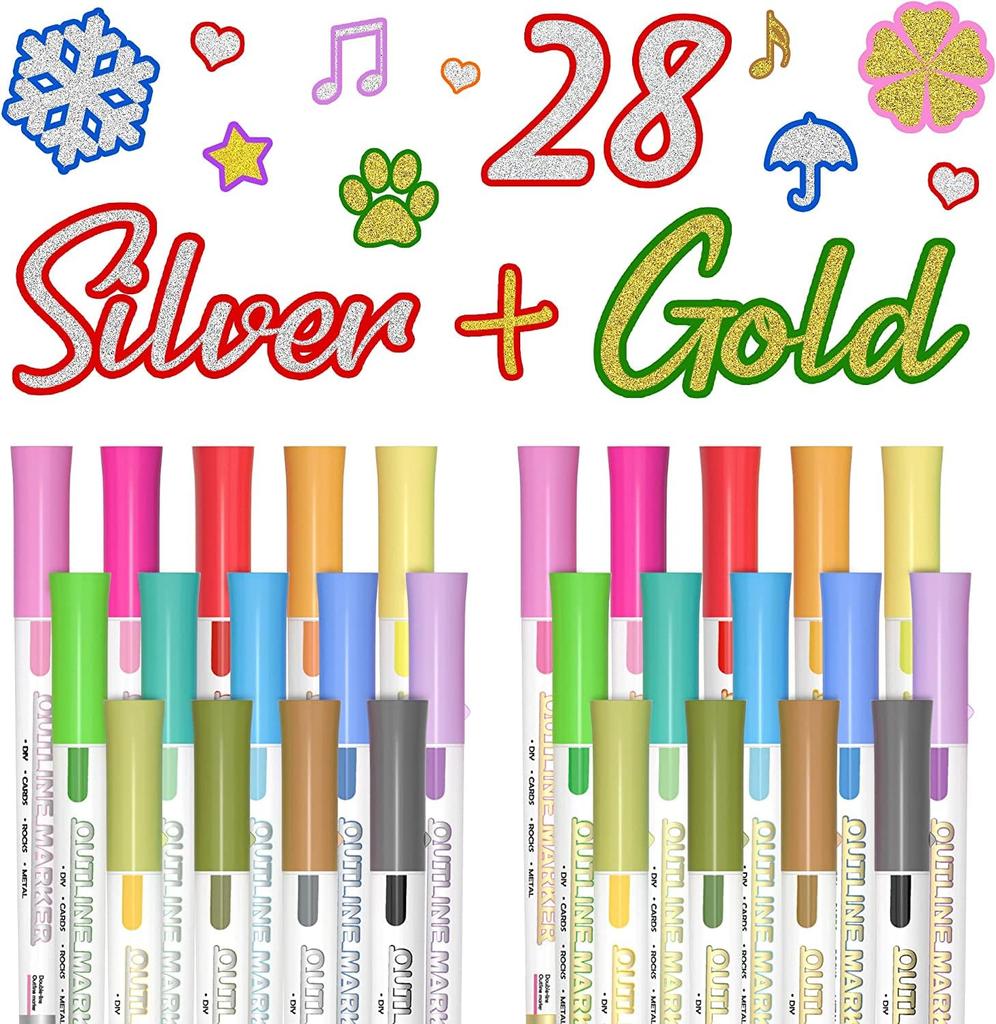 Shuttle Art Outline Double Line Metallic Gold and Silver Outline Bright Outline Decorative DIY Birthday Christmas Handwritten New Letter Black Kids