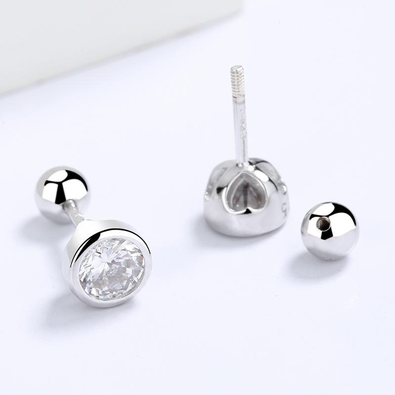 Copper zircon round bead threaded stud earrings, women's screw twist-off stud earrings, simple and fashion