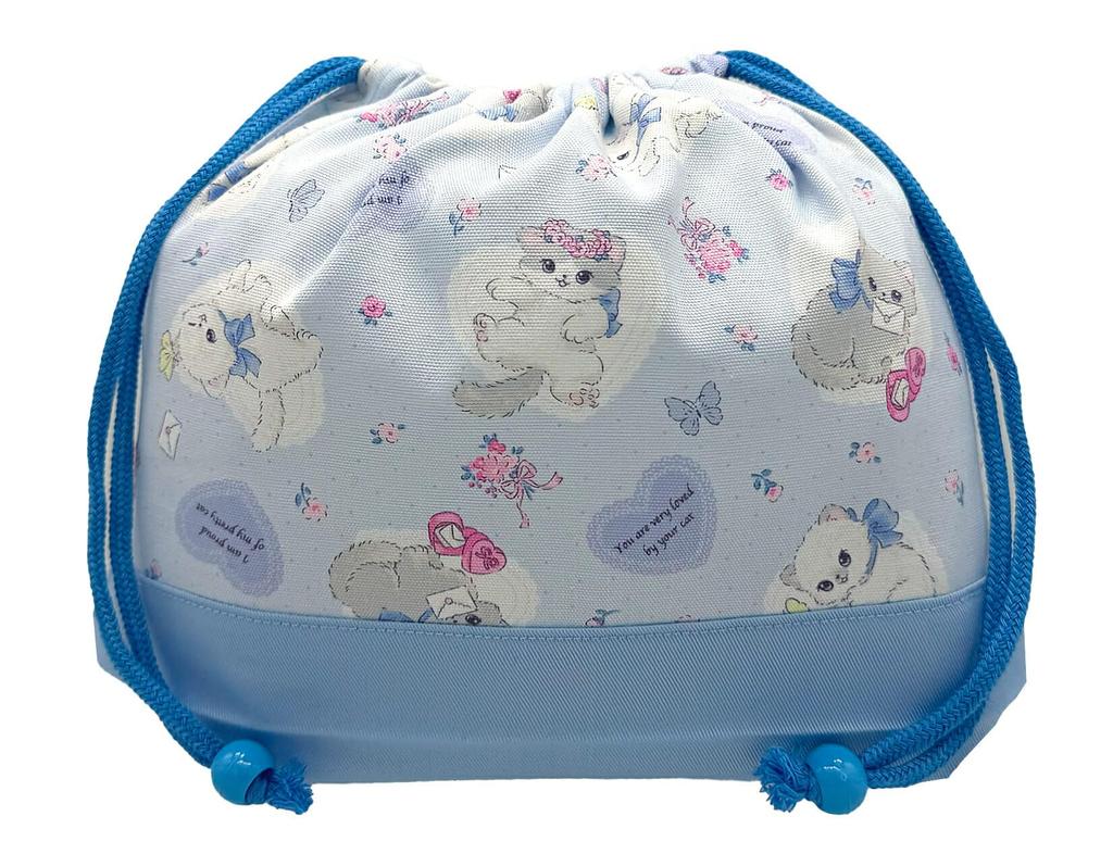 Miwaki Lunch for with Bento Box and Cup Suitable for Elementary and Made in Includes Name and Fluffy Cat Size BL M Bag, Medium, Drawstring, Girls,