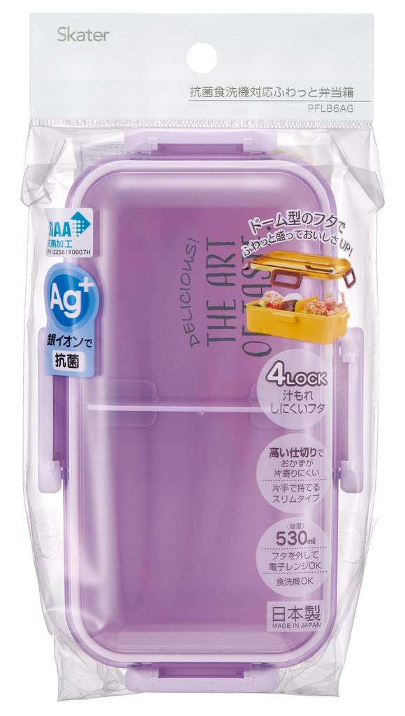 Skater Bento Single Made in for with a Lock for Dishwasher and Microwave Nuanced Purple Box, 530ml, Tier, Japan, Women, 4-Point Leak-Resistant