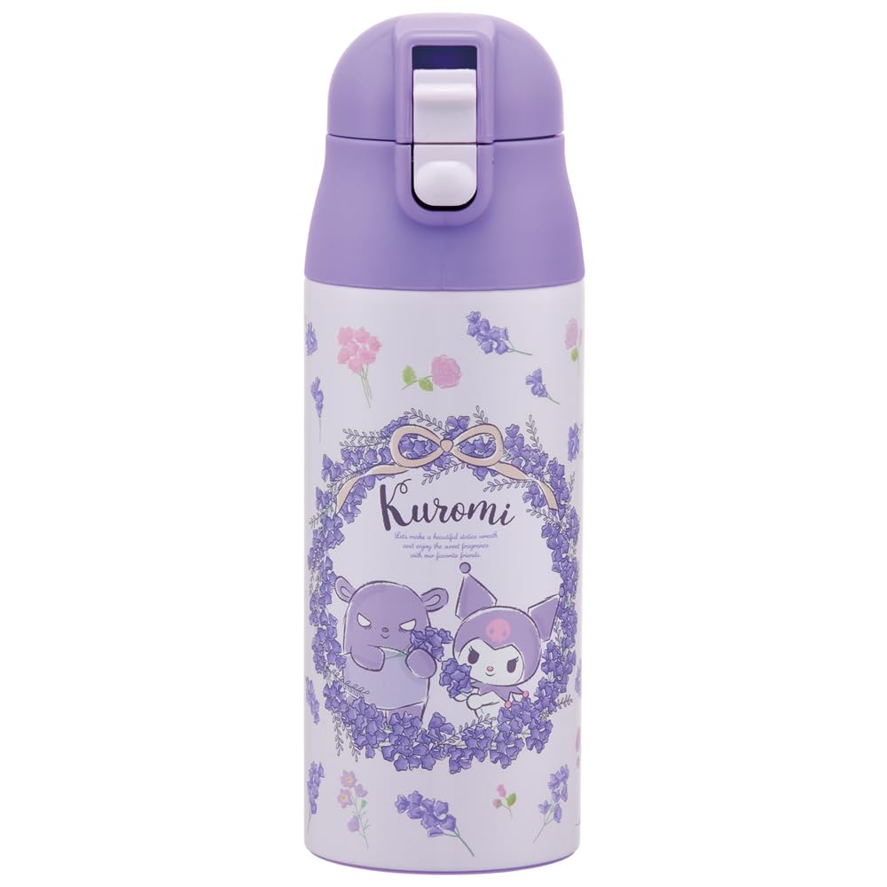 Skater 360ml Stainless Steel Mug Bottle with Insulated Heat and Cold featuring Kuromi and Flower Wreath Design Functions, Sanrio's (SDPC4-A)