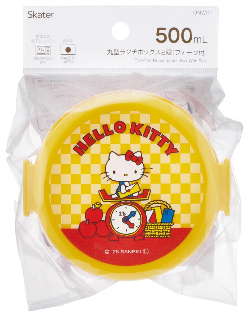 Skater Round Lunch 500ml Two with Made in Sanrio Hello Kitty Retro 25 Box, Capacity, Tiers, Fork, Japan, Design, ONWR1-A