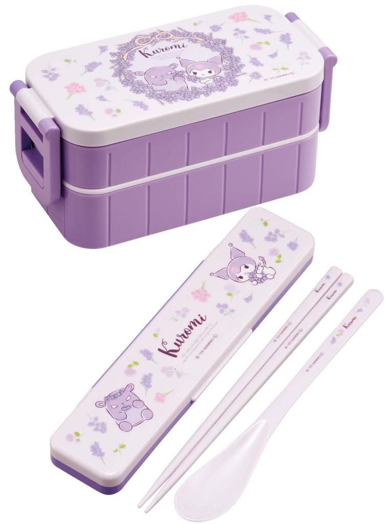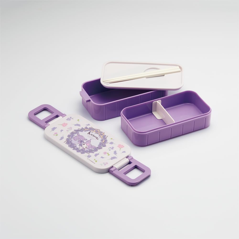 Skater Bento for Made in Sanrio Kuromi Flower Wreath Box, 2-Tier, 600ml, Antibacterial, Women, Japan, Design, YZW3AG-A