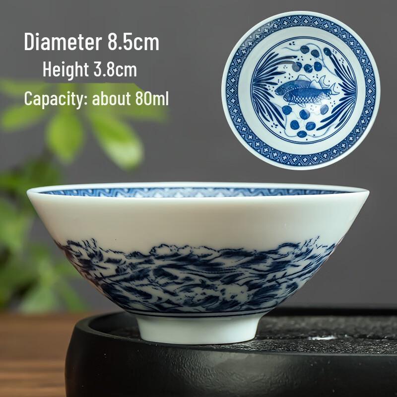 Traditional Blue & White Ceramic Kung Fu Teacups Set
