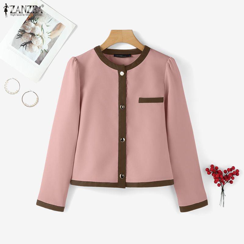 ZANZEA Женская повседневная блузка с круглым вырезом и длинными рукавами