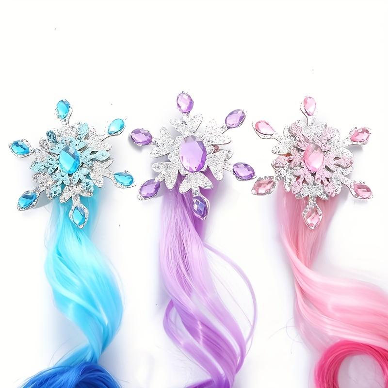 Children's Colorful Wig Hair Clips - Snow Queen - themed Gradient Long Curly Hair Girls' Braided Colorful Rope Headpiece