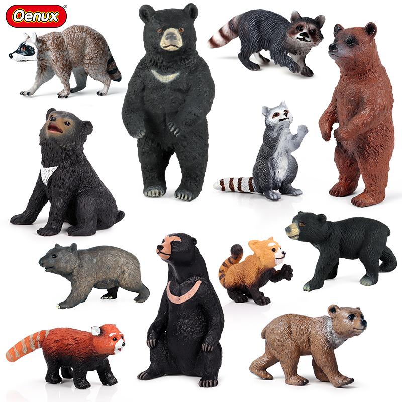 Характеристики:Oenux Симуляция Дикие Фигурки Черный Медведь Вомбат Енот Модель Фигурки Лесные Животные Игрушка Украшение Дома Детское Образование