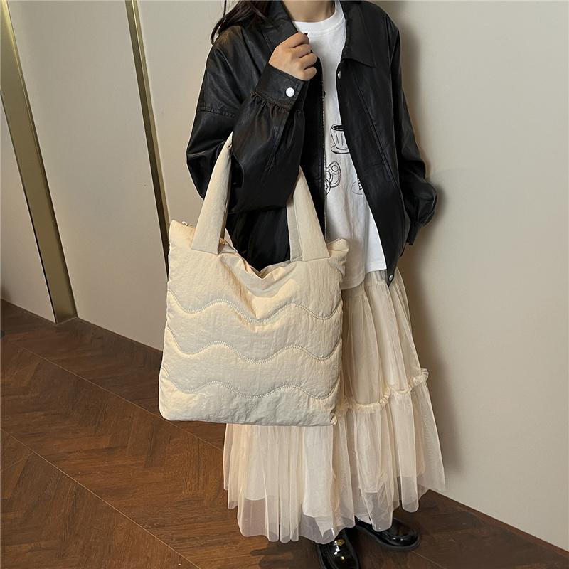 Минималистичная нейлоновая сумка-тоут для женщин – Легкий и водостойкий дизайн с волнообразной прострочкой, идеально подходит для ежедневного использования