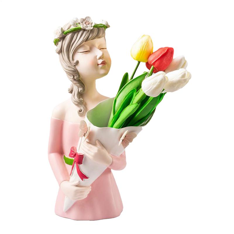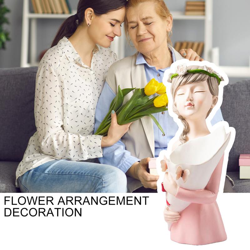 Девушка Ваза Художественная Полимерная Статуэтка Девушки Ваза Женская Скульптура Настольная Кашпо Эстетичный Декоративный Современный Держатель для Цветов