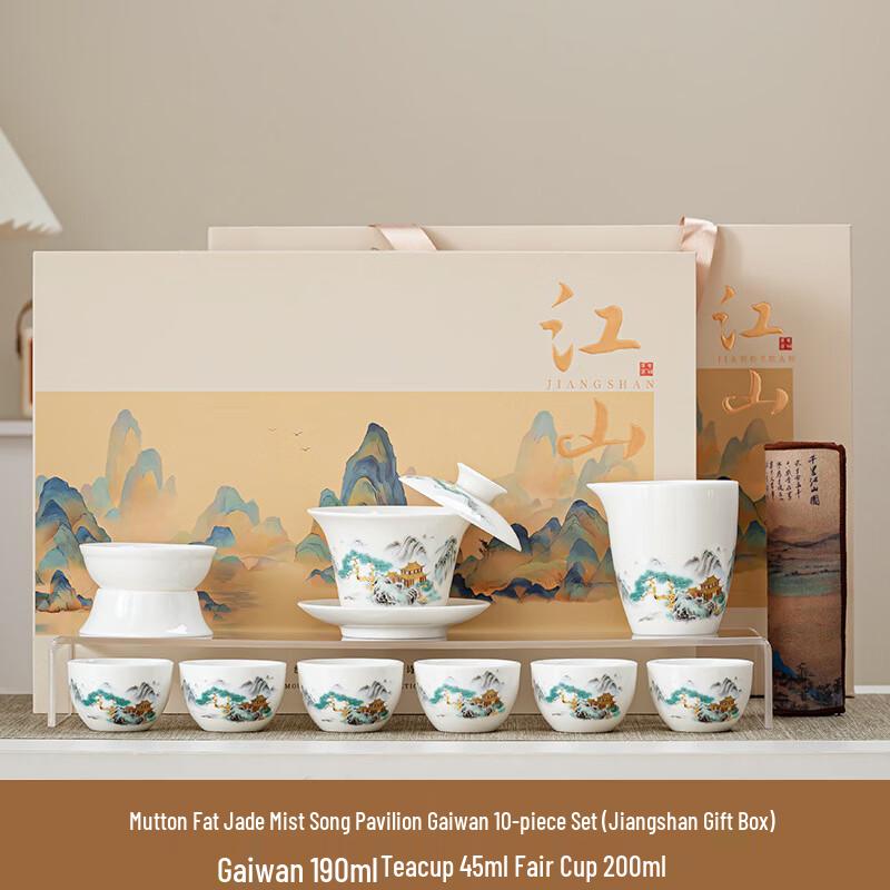 New Chinese Style Mutton Fat Jade Tea Set