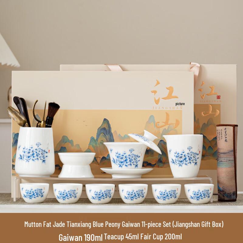 Dehua Jade Porcelain Gaiwan Tea Set with Peony Design — купить товар онлайн с бесплатной доставкой по всему миру!