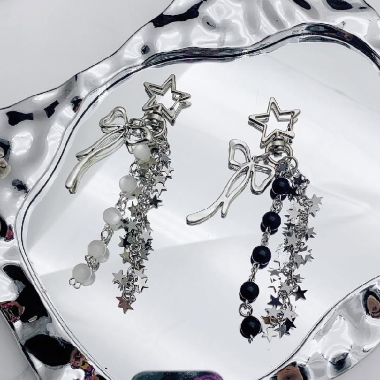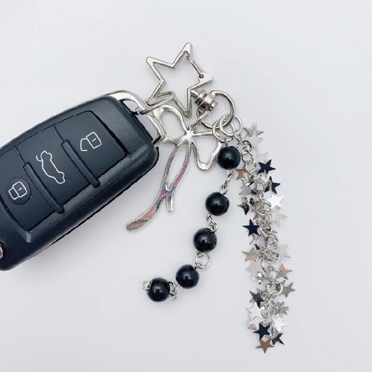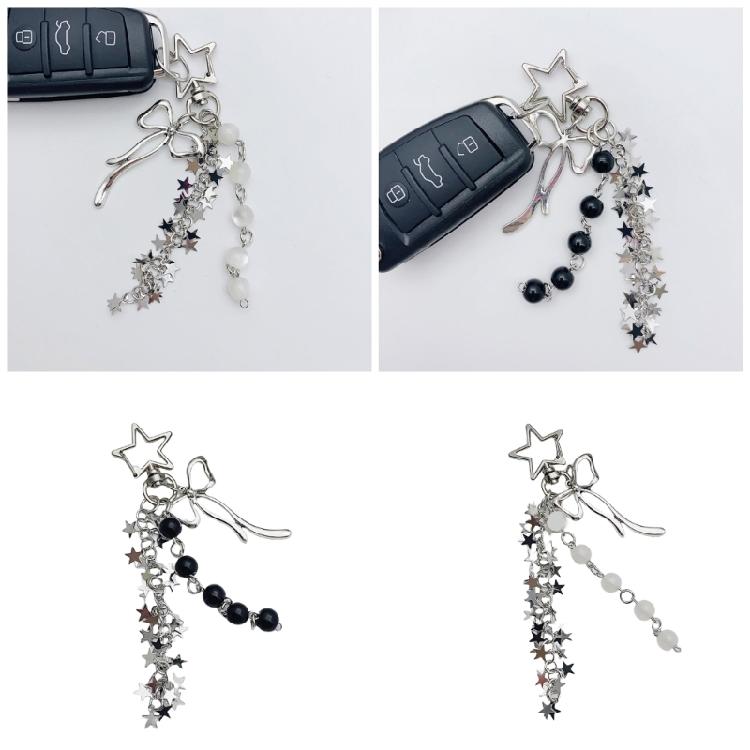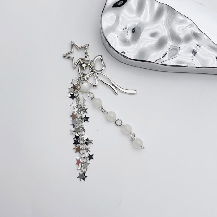 Уникальный брелок со звездой, кисточками и бантом, модный держатель для ключей, цепочка для телефона, брелок из бусин, украшение для женщин и подростков
