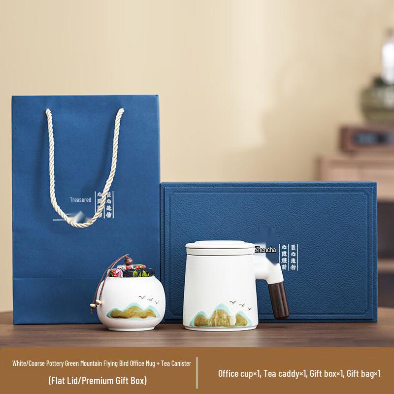 Zhuchuang Jingpin Green Mountain Bird Ceramic Mug & Tea Caddy Gift Set