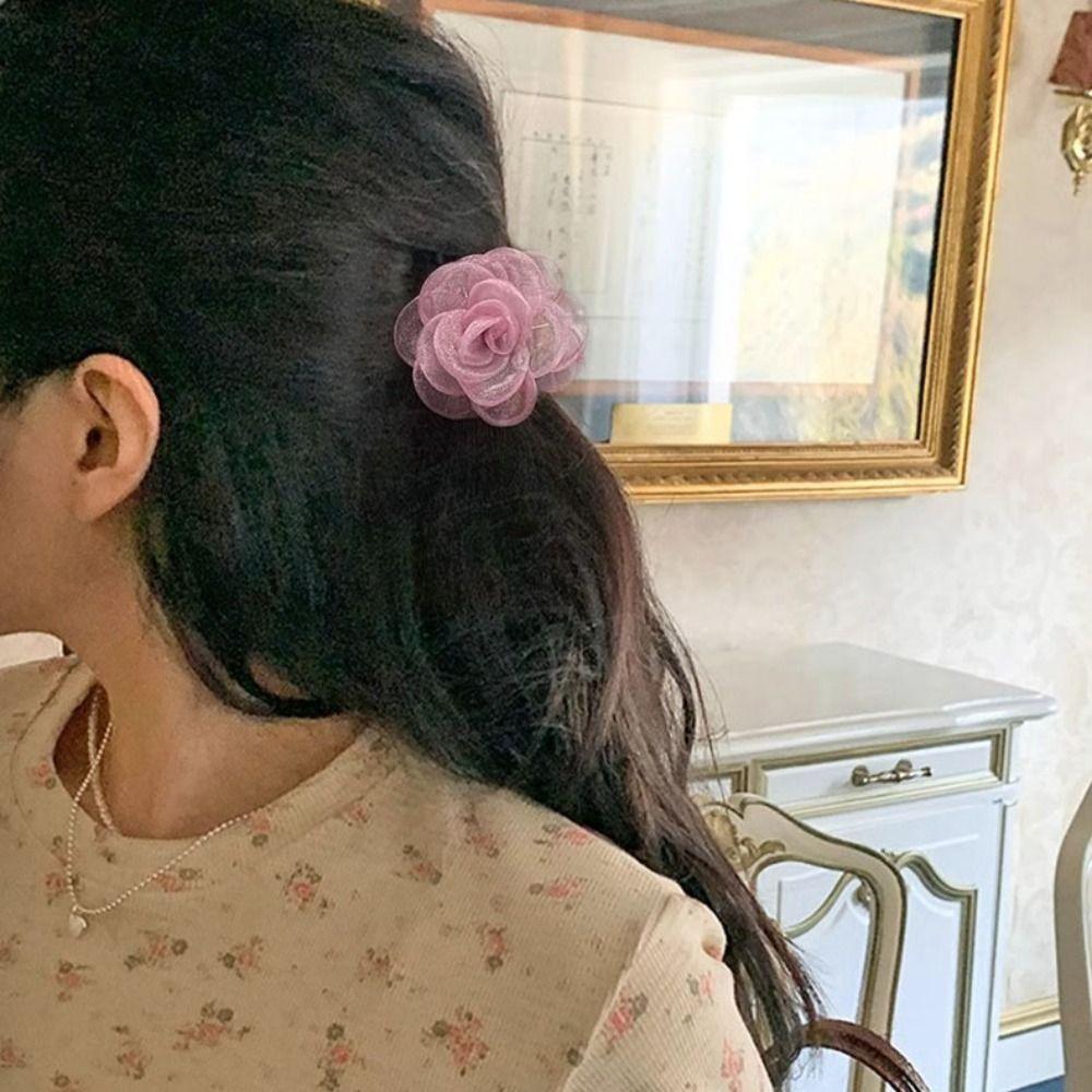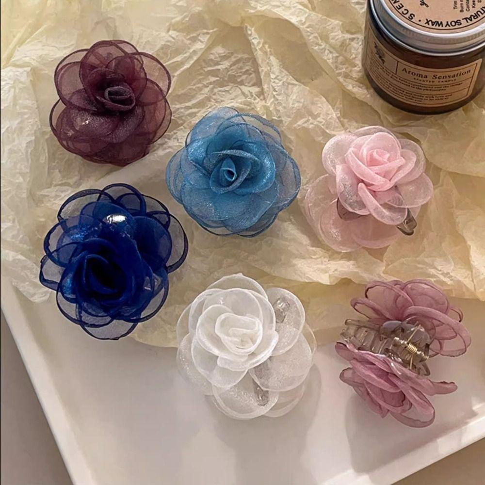 Cloth Camellia Shark Clip French Style Flower Claw Clip Elegant Simulation Flower Hair Claw Beach