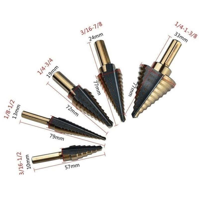 5 шт. Металлическое ступенчатое сверло с двумя спиральными канавками, 50 размеров от 3/16" до 1-3/8", Ступенчатые сверла для металла, алюминия, дерева и пластика