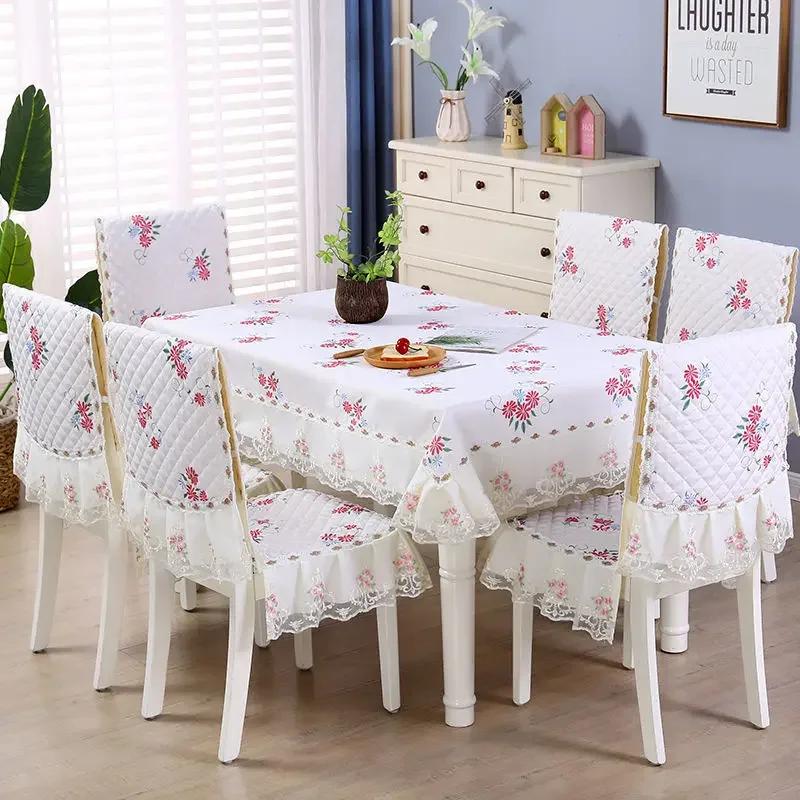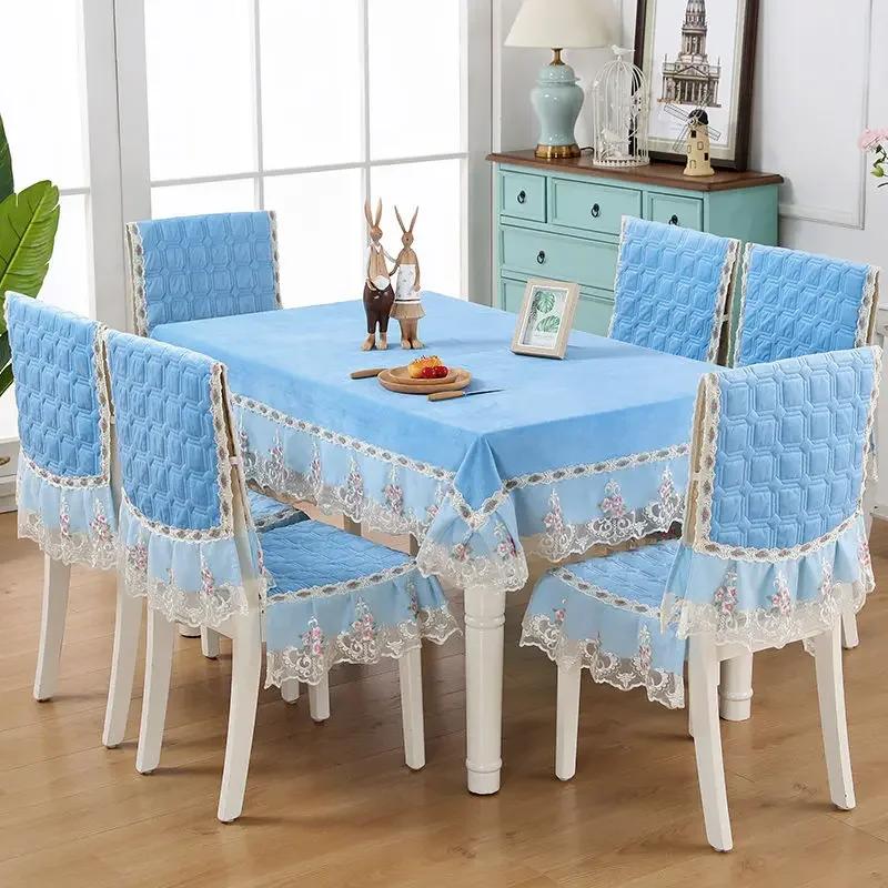 Современный Минималистичный Жаккардовый Набор Скатертей для Обеденного Стола Противоскользящая Подушка для Стула Чехол для Стула Четыре Сезона С Кружевом Круглая Скатерть