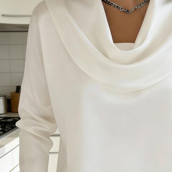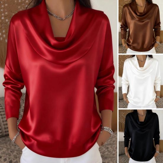 Женская рубашка изготовлена из высококачественного полиэстера, обеспечивающего воздухопроницаемость и мягкое, приятное к коже ощущение для комфорта в течение всего дня.. Благодаря уникальному атласному отложному воротнику и длинным рукавам, которые можно подворачивать, он сочетает в себе стиль для поездок на работу с модной универсальностью..