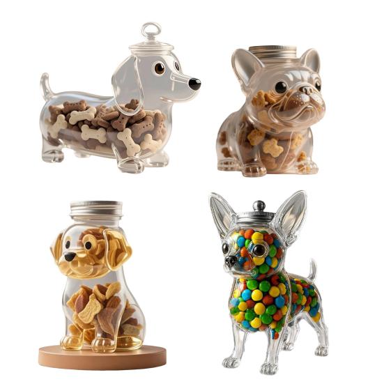 Представляем универсальную банку для конфет, незаменимую вещь для любой поверхности в вашем доме.. Этот стеклянный контейнер имеет уникальный дизайн на собачью тематику, идеально подходящий для хранения сухих закусок, конфет или маленьких лакомств для домашних животных.. Интегрированные уплотнители обеспечивают свежесть, уменьшая воздействие воздуха и влаги, продлевая срок годности ваших хранимых продуктов..