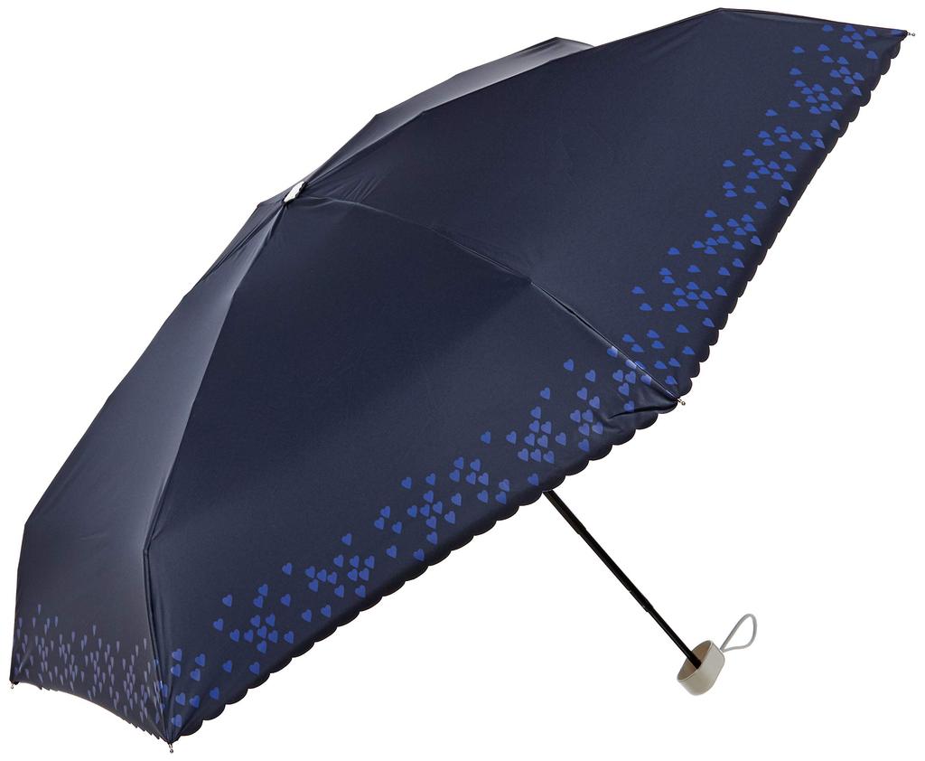 Moonbat estaa Heart Mini Folding Perfect Gift for Women for Rain or UV Light and Heat Navy Rib 50cm 5-Section Parasol, Simple, Stylish, Cute,