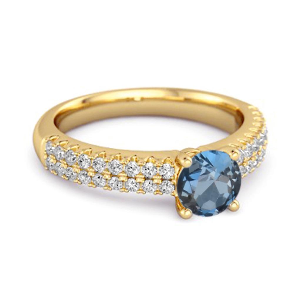 London Blue Topaz Double Pave Band Ring - 925 Sterling Silver Gold Vermeil