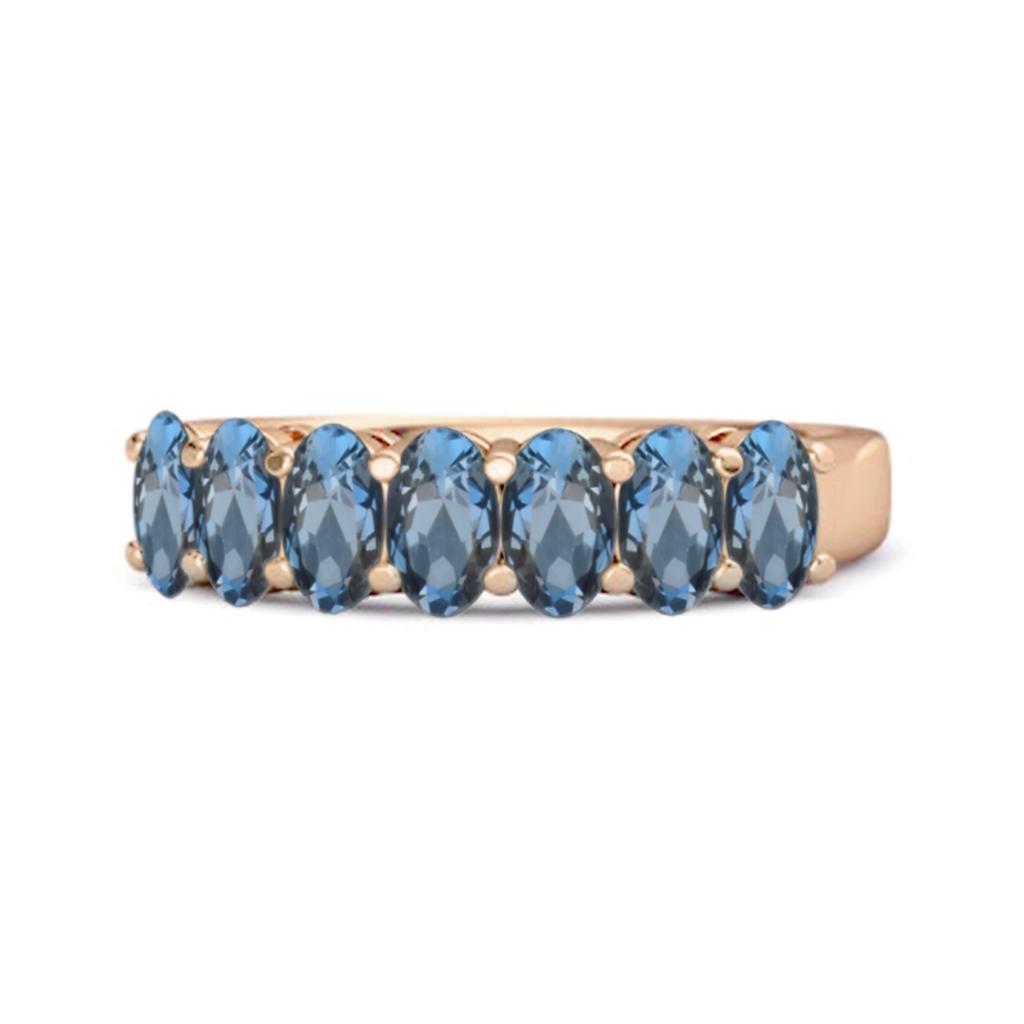 London Blue Topaz Oval Half Eternity Band Ring - 925 Sterling Silver Rose Gold Vermeil
